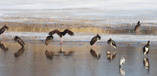 阳光讯(记者 张伟 通讯员 梁会平)日前,数十只国家一级保护动物黑鹳现身千河流域陇县段,或栖息觅食、或翩跹起舞,成为陇县冬日一道靓丽风景,吸引了众多市民和摄影爱好者。据悉,随着陇县生态环境持续向好,已连续10年有黑鹳栖息陇县。